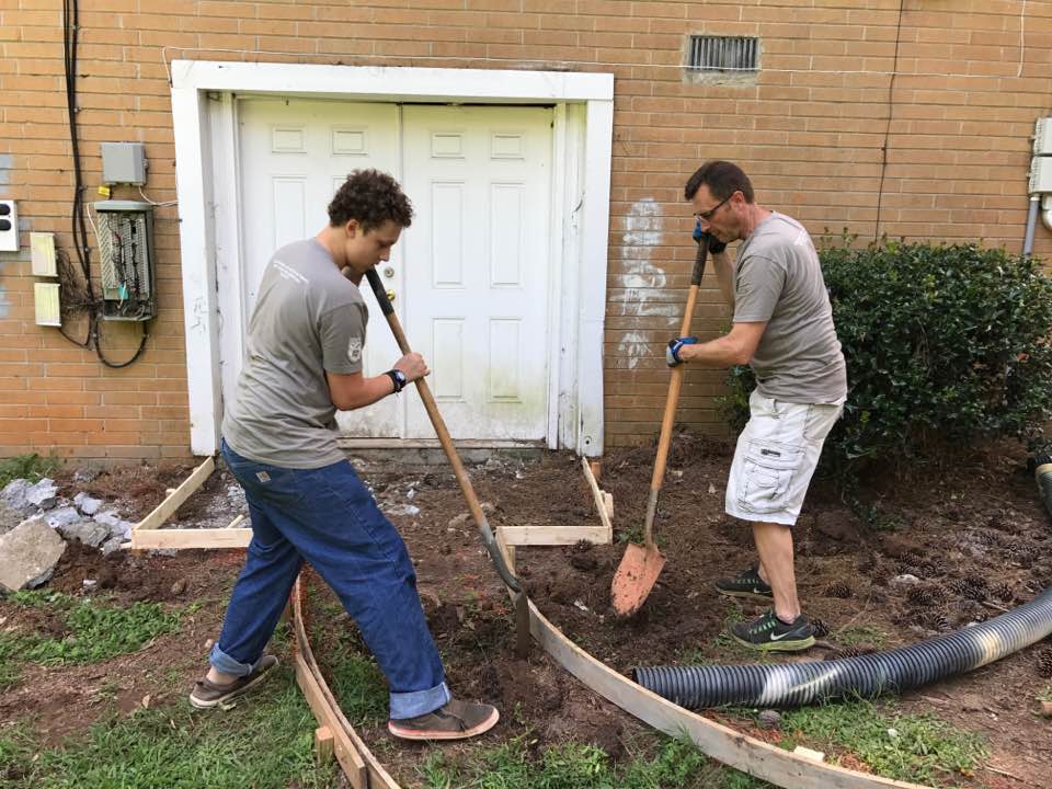 Our future ministry center still sits empty and a mess, however, the necessary work on the outside has begun! The three things we needed to happen before work on the inside could begin were: 1) sidewalks put in to access the basement, 2) a second door put in, and 3) work done on the building to prevent flooding on the inside.